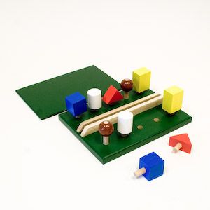 Pomůcka k procvičování paměti, je tvořena podstavou, rozdělenou svislou zástěnou na dvě poloviny. Na každé polovině jsou na kolíčcích zasazeny 5 "kamenů" rozdílných tvarů a barev. Princip: - vyndá se zástěna a jeden z hráčů nebo pg. prac. navolí libovolnou kombinaci "kamenů". Poté nasadí zástěnu a úkolem hráče je po paměti nasázet správnou kombinaci "kamenů".