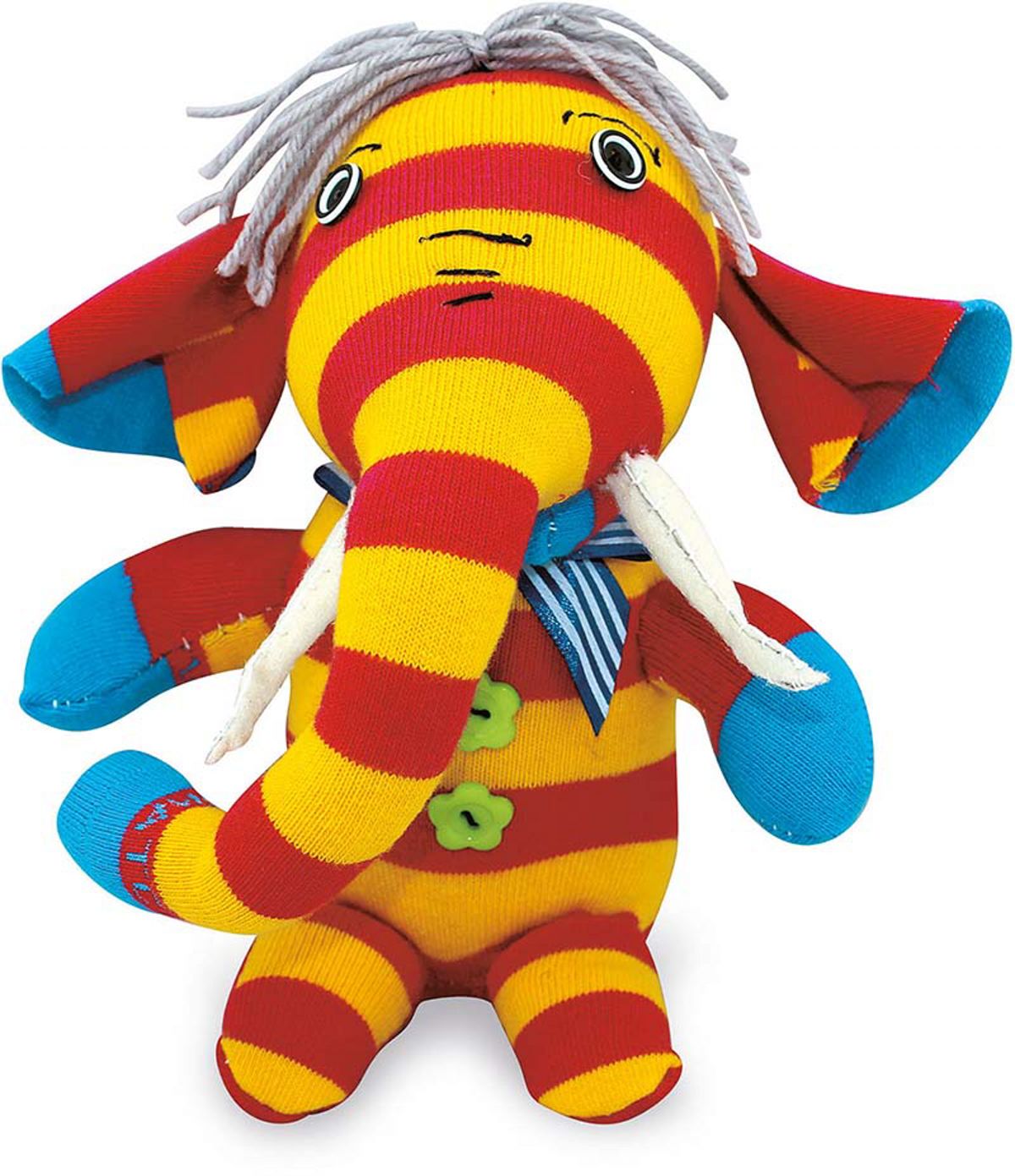 Z této sady vznikne z barevné pruhované ponožky s trochou zručnosti legračně vycpané zvířátko na mazlení. 2 ponošky, měkký výplňový materiál, nítě a jednotlivé díly z plsti na oči spojte přiloženou jehlou a vznikne roztomilý slon. Jen ještě připevnit dva knoflíky jako oči a už se vlastnoručně vytvořený slon probouzí k životu. Včetně návodu.